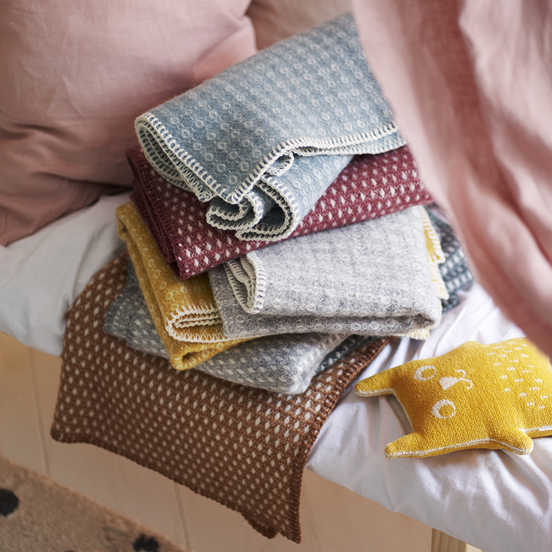 Knut är en mysig och skön barnpläd i 100% ekologisk lammull från svenska Klippans Yllefabrik. Underbar filt som fungerar året runt. Superfin i barnvagnen!