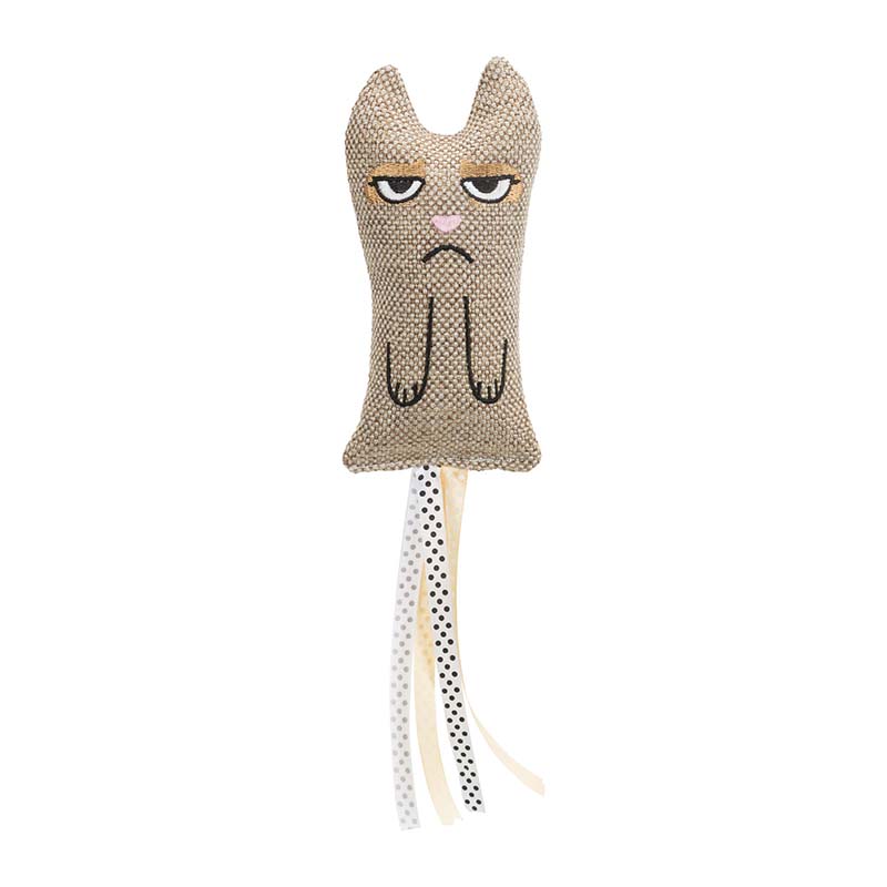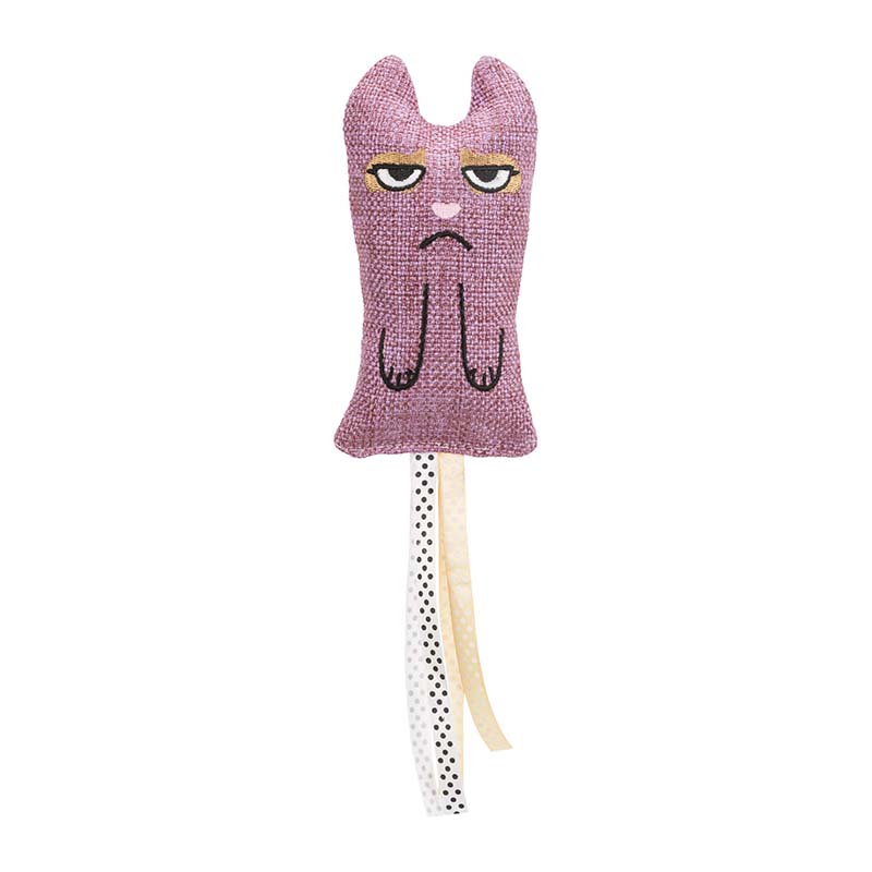 Butter tygkatt med spännande fransar som innehåller kattmynta. Storlek & form som uppmuntrar till ”brottning” och sparkar med baktassarna. Efter brottningen, en mysig kudde redo för cat nap.