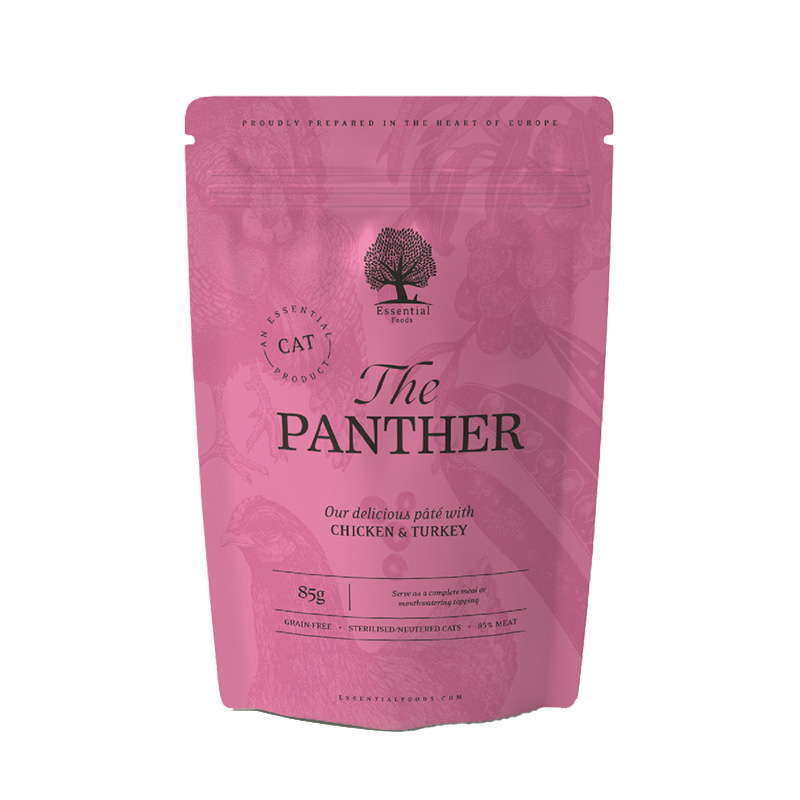 ESSENTIAL the PANTHER PÂTÉ är en läcker måltid med bitar av kycklingfilé i tjock kalkonsås!