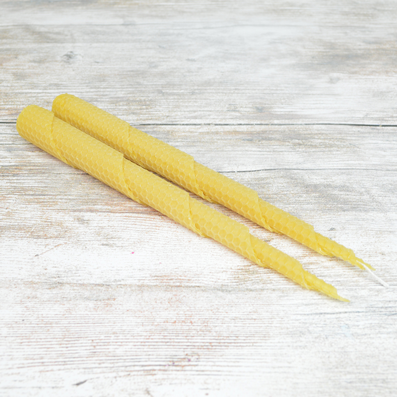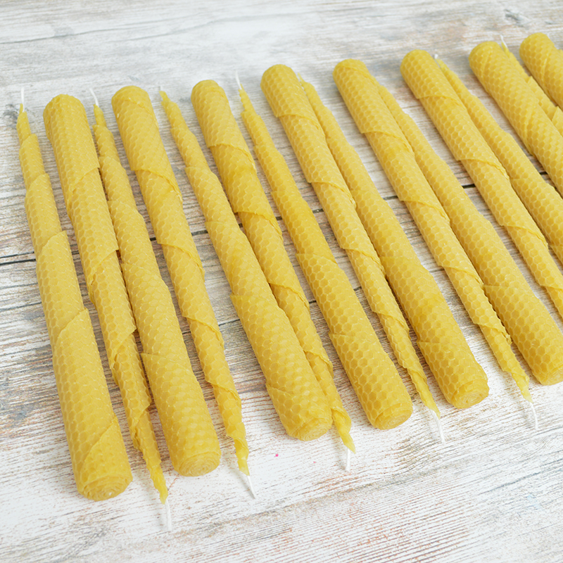 Vackra handgjorda (handrullade) bivaxljus som sprider en mild och helt naturlig doft av honung.