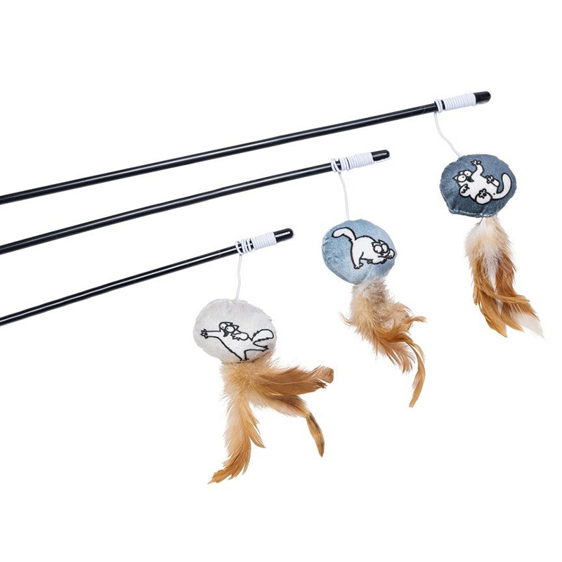 Skojigt kattspö med ett Simon’s Cat plyschhänge och fladdrande fjädrar som stimulerar kattens jaktinstinkt och sporrar den att jaga, lura på och förfölja de retsamma fjädrarna. Finns i tre olika färger!