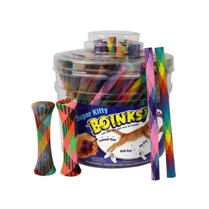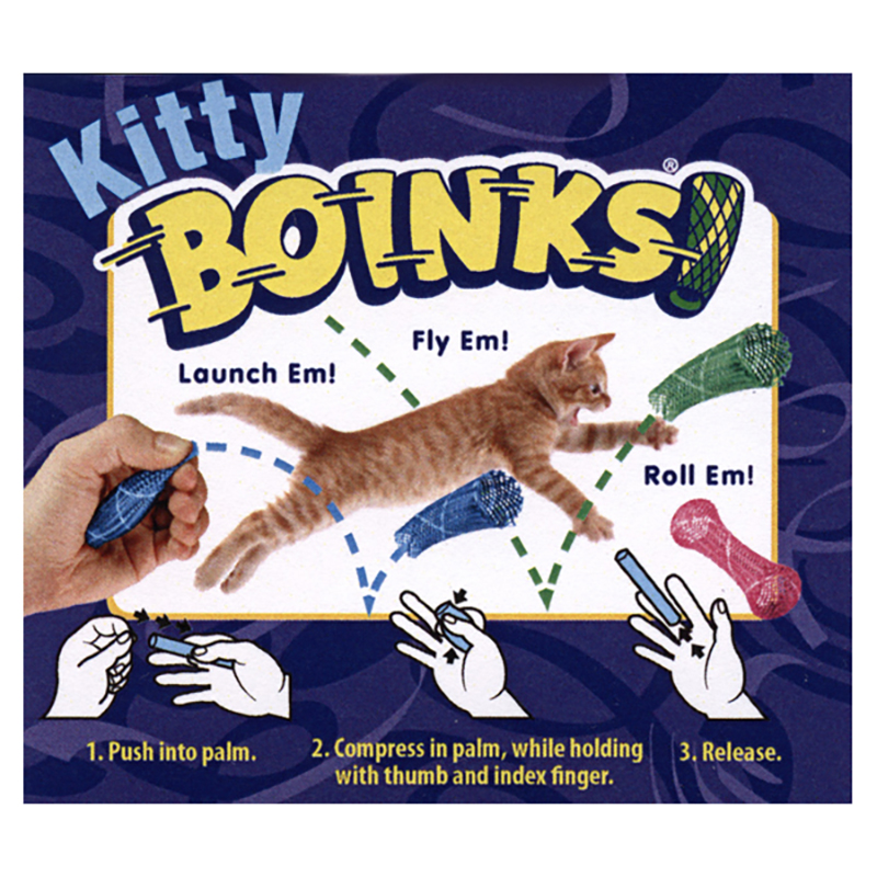 LEKTIPS! Komprimera Boinkisen i handen och släpp den för att skjuta i väg och låta katten jaga den över golvet. Eller stoppa i ändarna i rullen för att göra din Boink till en rullande leksak. En riktig favorit som har en förmåga att försvinna spårlöst efter 3 sekunder ….
