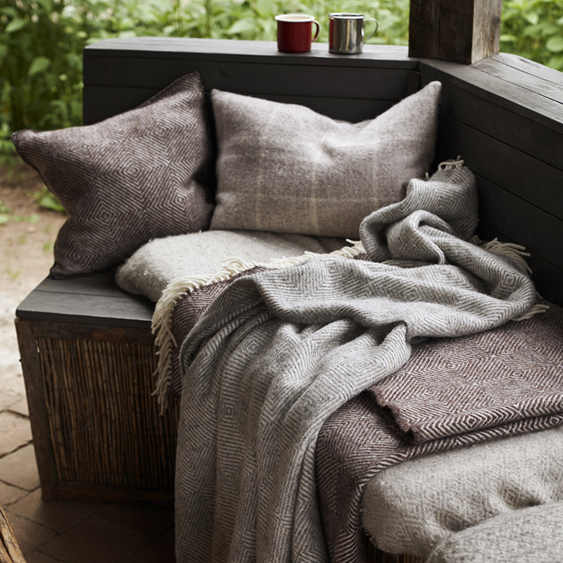 Gooseye kuddfodral har ett klassiskt mönster och är vävd i en mix av återvunnen ull och ekologisk lammull. Mönster Gåsöga är ett av de mest kända och mest omtyckta mönster vi har från den svenska mönstertraditionen. Tack vare mixen med den återvunna ullen – där spill av olika ullfibrer och garnrester tas tillvara – får vi vid vävningen fram denna dova, vackra färgskala.