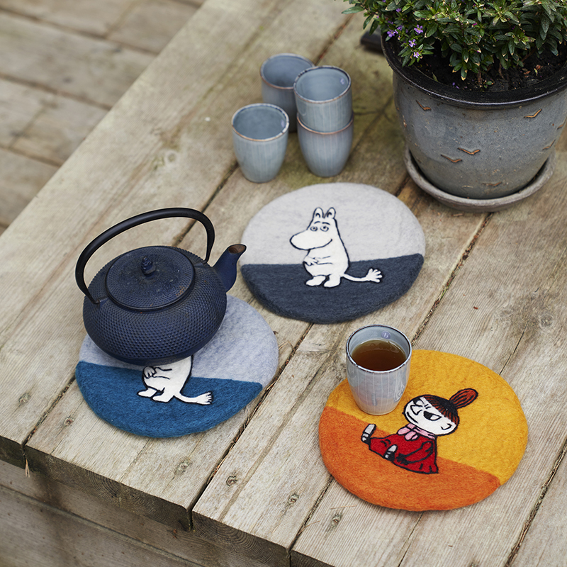 Grytunderlägg Mumin tillverkas av 100% handfiltad ull, vilket ger ett unikt uttryck. Underbart, tycker vi! Handgjort med en unik känsla!