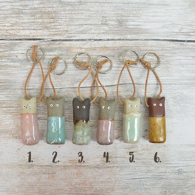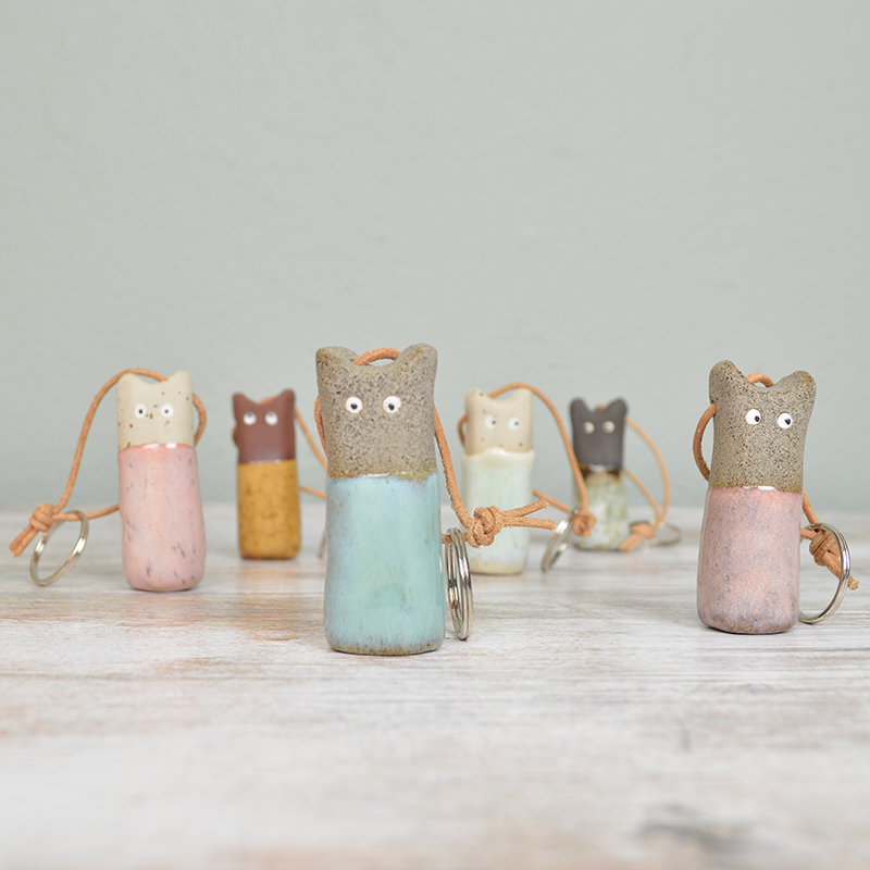 Dekorativ och vansinnigt söt nyckelring av stengods, handgjord med massor av kärlek i Malmö. Vi älskar att varje nyckelring är unik till utseende och personlighet. En nyckelring är en perfekt present och stilfull accessoar till alla kattälskare. Man kan även använda dem till att dekorera skåp, lådor och mycket mer. Eller varför inte piffa upp handväskan? Så snyggt!